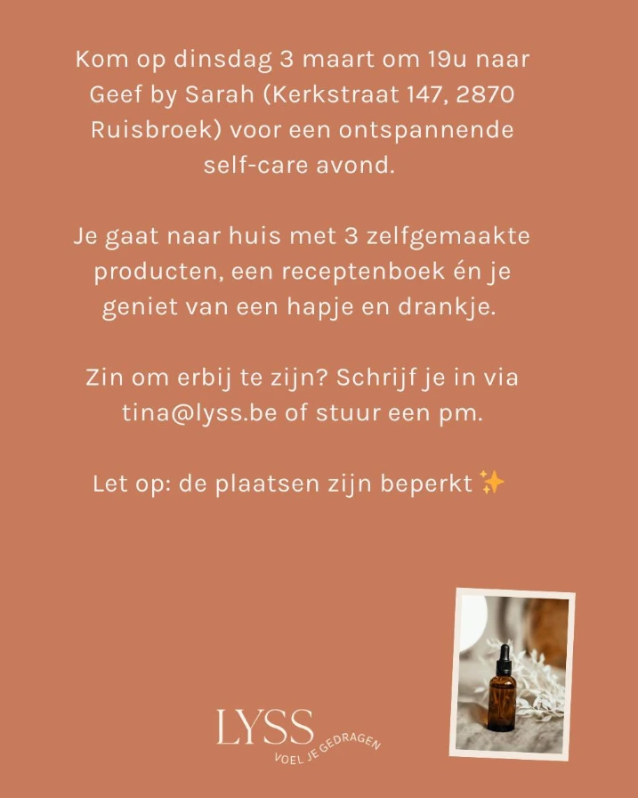 Workshop verzorging door onze Ruisbroekske 'LYSS HOLISTISCH'
